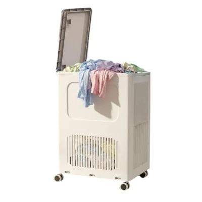 LARGE CAPACITY - The 123L dirty laundry basket allows you to easily collect clothes, towels and sheets, ideal for large families or those who handle large amounts of laundry. Easy transportation: thanks to the sturdy wheels, the dirty laundry basket can be easily moved even when fully loaded. Vertical design: the compact and space-saving laundry basket fits perfectly in your laundry room, bathroom or bedroom, keeping order and convenience. Greater hygiene: The included lid keeps the dirty laundry basket closed, protecting your laundry from dust and odors, as well as ensuring discretion. DURABLE MATERIALS - The sturdy plastic laundry basket is easy to clean and designed to withstand daily wear and tear, ensuring durability.