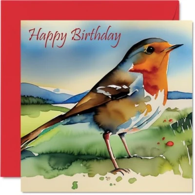 MAKE THEM SMILE WITH THIS BIRTHDAY CARD: This exceptional quality birthday card shows a design of a robin with the words "Happy Bithday". If you are looking for awesome birthday cards, then this happy birthday card is bound to make them smile. This could also be for Best Friend, Work Colleague, Brother, Colleague, Cousin or bestie. WHAT DO YOU GET: The card is printed on one side and BLANK ON THE INSIDE to allow you to write your very own message. The unique design is printed on a specially sourced and environmentally responsible board. At 360 microns thick the natural white one-sided gloss board has a quality look and feel. Supplied with a coloured gummed envelope to complement the design and ready to be sealed and sent in the post. NO INK SMUDGES: There is nothing worse than writing inside a card to find that the shiny surface makes the ink smudge. This is why we use a high quality one sided coated board. The uncoated side will absorb more of the ink from your pen to make smudging a thing of the past. SIZES: Greeting Card = 145mm x 145mm, Envelope = 155mm x 155mm, Card Thickness = 360 micron. Great friend birthday cards, 30th birthday card, happy birthday cards. MADE AND QUALITY CHECKED IN THE UK: We print and manufacture all our product right her in the UK so you can be sure of a fast turnaround and a product that is expertly made. Using environmentally responsible premium board our card is conscious of the responsible management of the world's forests.