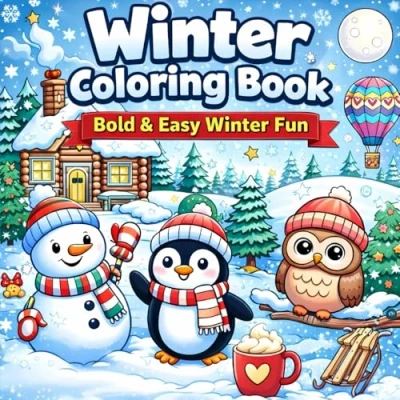 Winter Coloring Book: Bold & Easy Fun: 55 Simple and Relaxing Pages for Kids, Teens, Adults