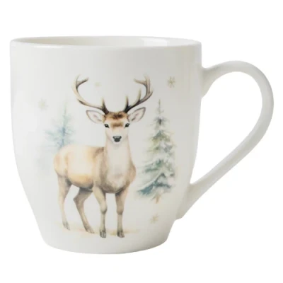 Bring a calm seasonal touch to your cosy moments with the Reindeer Ceramic Hugga Mug, featuring a graceful deer set among soft snow tipped trees on a smooth cream mug designed for warming your hands on cold days. This comforting shape and gentle artwork make it a lovely choice for winter drinks and relaxed evenings at home.. Cosy hugga style ceramic mug with a gentle curved shape ideal for wrapping hands around during warm winter drinks. Beautiful winter deer illustration surrounded by soft snowy trees creating a calm seasonal look without feeling overly bold. Generous mug size perfect for hot chocolate creamy coffees spiced teas or any winter favourite that makes cold days feel warmer. Cream ceramic finish that suits both modern and traditional festive decor adding a soft winter charm to your kitchen or coffee corner. Lovely gifting choice for Christmas winter birthdays or thoughtful seasonal surprises offering something both practical and atmospheric. Dimensions H 11.5cm x 11cm (approx). Capacity 500ml approx