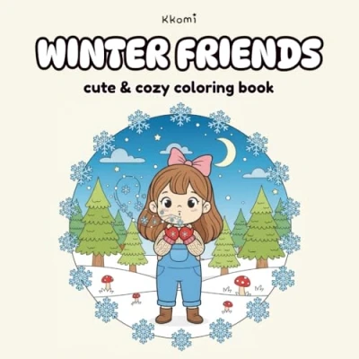 Winter Friends:cute&cozy coloring book: Adorable Girl and Animal Friends Enjoying Fun Snowy Adventures