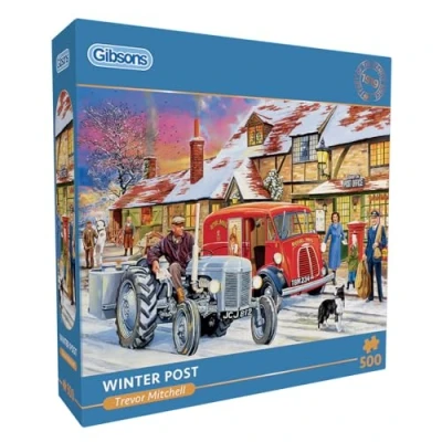 Winter Post 500 Piece Jigsaw Puzzle Christmas Countryside Nostalgia Sustainable for Adults Premium 100% Recycled Board Great Gift Gibsons Games B Corp Certified
