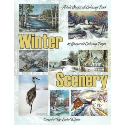 winter Scenery: Adult Greyscale Coloring book with beautiful scenery pictures. If you like to color winter, then this is for you.