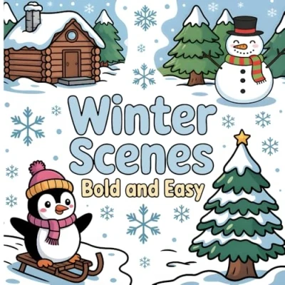 Winter Scenes: Bold and Easy Coloring Book for Kids Toddlers: Cute Animals, Snowflakes, Christmas, Cozy Fun!