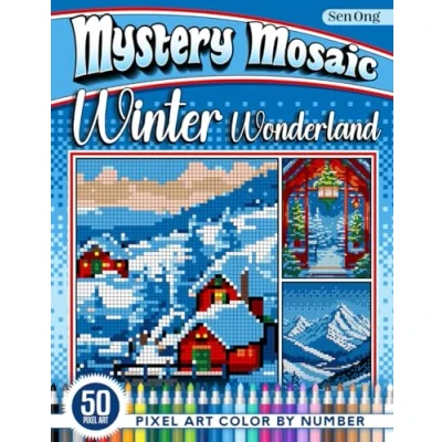 Winter Wonderland Mystery Mosaics Color by Number: 50 Pixel Art Scenes of Snowy Landscapes