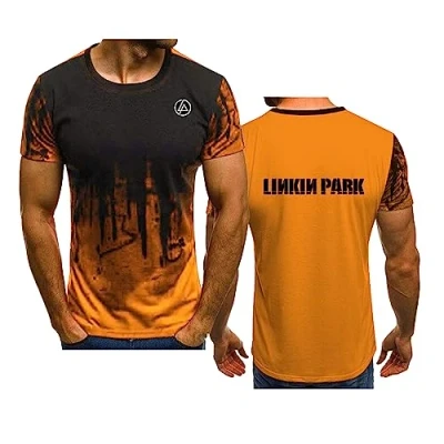 WIOSEN Adults Sports T Shirt for Linkin Park Casual Comfortable Tee Short Sleeve Summer Running Loose Soft Tops Tees Clothing Undershirt, Orange M