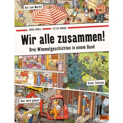 Wir alle zusammen!: Drei Wimmelgeschichten in einem Band: Unser Zuhause, Hier wird gebaut, Auf zum Markt!
