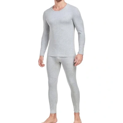 wirarpa Men's Thermal Underwear Set Cotton Warm Base Layer Lightweight Long Sleeve Top & Pyjama Bottoms Heather Gray Size M