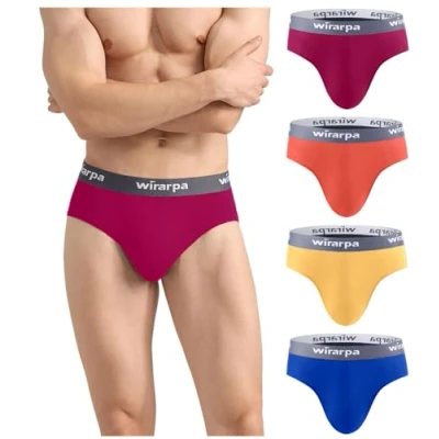 SUPERB QUALITY MODAL UNDERWEAR: Feeling soft and light, wirarpa men's briefs is lovely on the skin and gives the silky smooth. You may forget you have underwear on. SOFT ELASTIC WAISTBAND: The underpants briefs features a wide durable waistband that always stay in place, no slipping down or riding up as you walk. The pinch-free leg openings are also stretchy to avoid cuting the blood supply to your legs. NO OPEN FLY POUCH: The mens pants underwear have double-layer front pouch, and there is a front smooth seaming for added support. The ergonomic pouch shape brings more space and support, keeping everything comfortably in place. TAGLESS UNDERPANTS FOR MEN: The tag-free briefs make it no need to cut any tags, just say goodbye to scratchy labels. The mens underwear wash well without any shape or colour loss and tumble dry brilliant. FIND YOUR FAVOURITES FOR MEN: 4 Pack mens briefs underwear is great choice for your husband, son and father for Christmas, New Year and Father's Day.