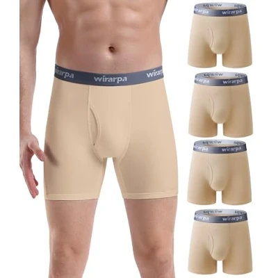 wirarpa Men's Underwear Trunks Cotton Stretch Boxer Shorts Open Fly Tagless Underpants for Men Regular Leg 4 Pack Beige Size S