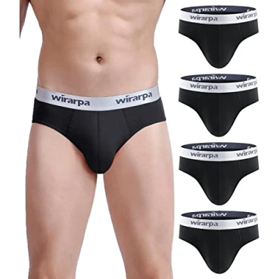 wirarpa Mens Briefs Underpants Cotton Soft Wide Waistband Underwear Basic No Fly 4 Pack Size L, Black