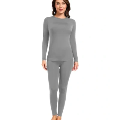 wirarpa Women's Thermal Underwear Set Fleece Lined Base Layer Ladies Long Sleeve Top & Bottom for Winter Warmth Light Grey Size L