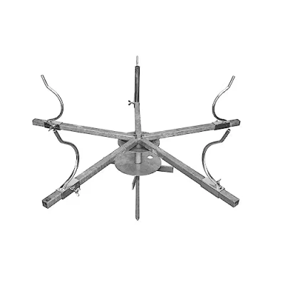 The wire reel consists of a base element with a solid ground nail, a rotatable upper part with 5 outriggers and 5 adjustable attachments.