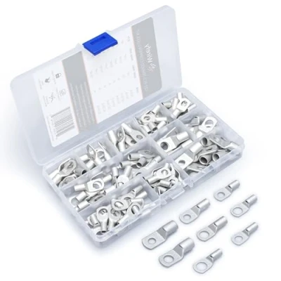 Wirefy 120 PCS Tinned Copper Wire Lugs Kit Battery Crimp Cable Ends Ring Terminals 10 4 Gauge