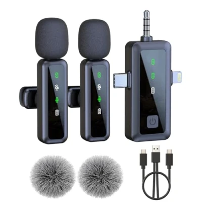 [Studio-Quality Sound] Experience broadcast-ready audio with this high-sensitivity mini microphone. It delivers recording studio vocal clarity, making it the ultimate choice for video creation on iPhone, iPad, and Android. [Instant Plug & Play Connection] Enjoy truly wireless simplicity. Included Type C + Lightning + 3.5mm adapter allow instant connection to your phone, tablet, or laptop—no apps or Bluetooth required. [Clear Audio Anywhere] Designed with high-density sponge and deadcat covers, plus advanced DSP, this microphone captures your voice clearly on busy streets, outdoors, or during live streams. Conquer wind and noise effortlessly. [360° Clip & Universal Use] The rotating clip secures perfectly on collars, shirts, hats, or gear. Capture ideal audio for YouTube, TikTok, interviews, or vlogs from any angle. [Ultra-Light & Long-Lasting] Weighing only 0.2oz, this durable mini mic is built with premium materials. It fully charges in 1.5 hour and provides up to 8 hours of recording time.