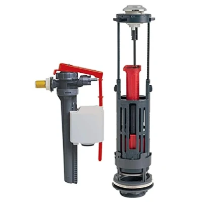 Wirquin 10723589 D'eau complète mécanisme wc Double Chasse One & Robinet flotteur à Alimentation latérale Jollyfill, gris et Rouge 10722123 Dual Flush Set Float Valve, Grey and Red