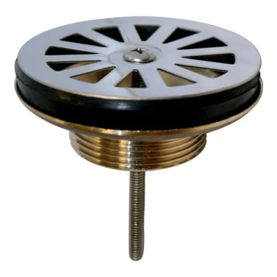 Wirquin 30724329 Drain Fitting for Kitchen Sink 1 Bowl Ø60 mm Brass with Stainless Steel Flat Grill, Chrome Plated