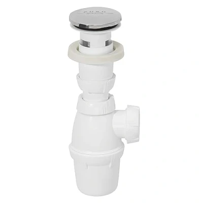 Quick-clac closure system for sinks Sink drain with built-in overflow plate, Quick-Clac stainless-steel stopper, siphon (height adjustable); input 1.25-inch; output diameter 32 mm; screw connector, Manufacturer: Wirquin