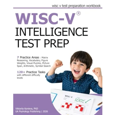 WISC V Intelligence Test Prep Preparation Workbook Matrix Reasoning, Vocabulary, Figure Weights, Visual Puzzles, Picture Span, Arithmetic, Symbol Search