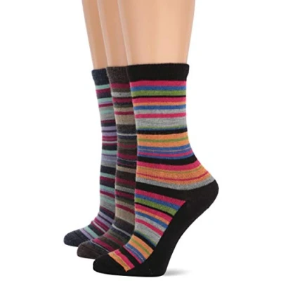 Wise Blend Women's Merino Wool Colorful Stripe Crew Socks 3 Pair Pack Casual, Multi, Medium (Pack of 3)