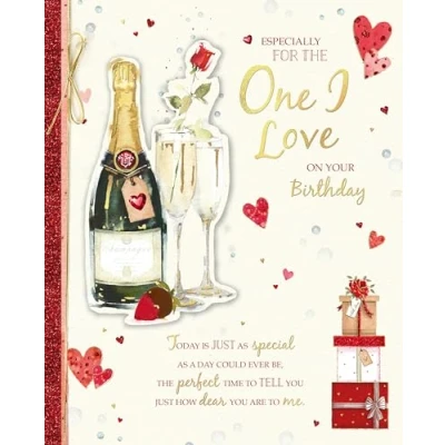 Wishing Well Birthday Card For The One I Love, Champagne And Roses Handmade Greeting Studios 8x10ins