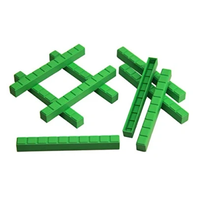 Dienes 50 green RE-Plastic tens sticks Contents: 50 green sticks of ten (dimensions: 1 x 1 x 10 cm) packed in polybag made of RE-Plastic: sustainable and 100% recycled, complies with toy standard DIN EN71-3 Made in Germany