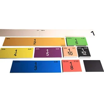 Demo - fraction set - linear distances - representation: set of 51 magnetic parts; format 1/1 = 100 x 10 cm; specification of fraction, decimal and percentage number support the understanding of the basic concepts of fractions calculation; can be ideally combined with our small linear fractions of RE-Plastic (EAN: 4260414063886) packed in environmentally friendly cardboard box made of MAG-Pap°: combination of 100% recycled cardboard and a magnetic foil, complies with toy standard DIN EN71-3 Made in Germany