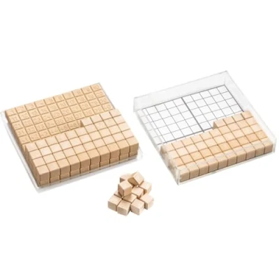 Dienes hundreds plate made of RE-Wood Contents: 20 cubes, 8 sticks, 1 printed hundreds plate (dimensions: cubes 1 cm³), a transparent box with lid and insert sheet packed in a box made of RE-Wood: sustainable and 100% recyclable, corresponds to the toy standard DIN EN71-3 Made in Germany, Manufacturer: WISSNER