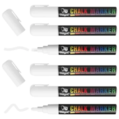 WISYOK 6pcs Chalk Pens with 45 Labels, Whiteboard Marker White, Flip Chart Pens, for Home, School or Office 6 mm Reversible Tip