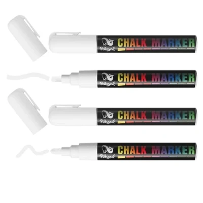 White: The chalk pen uses white water-based ink, which is non-toxic and odourless, safe and reliable and can be used without hesitation. The ink flows unhindered, which makes writing easier, with abundant ink, long life and no ink leakage during prolonged storage. Easy to erase: Chalk marks left by chalk pen on all smooth surfaces such as boards, windows, glass, tiles, stickers, whiteboards, plastic and metal, can be wiped clean with a damp cloth and dries in seconds. Double-sided pen tip: chalk pens offer a double-sided pen tip to meet your different writing needs. The bullet tip is used for line and detail work, the chisel tip for thick lines and fills. Widely used: chalk markers are suitable for any surface. You can use it to create Christmas crafts and decorations with your family, such as drawing wood/plaster eggs, and even use it as a gift for friends and children. Instructions: The white chalk tip has a valve structure. You need to squeeze out the ink before use. After the ink is absorbed by the pen tip, you can doodle.