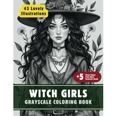 Witch Girls Coloring Book: Grayscale Book for Adults with 43 High Quality and Unique Illustrations Relaxation Stress Relief. (Grayscale Books Adults)