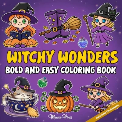 Witchy Wonders Bold and Easy Coloring Book: A Simple Witch Themed Book for Relaxation, Creativity, Stress Relief 30 Magical Pages of Spells, Potions, Mystical Designs