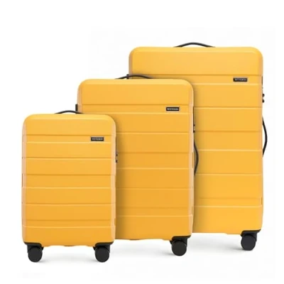 WITTCHEN Comodo Line Suitcase Hand Luggage Set ABS Telescopic Handle TSA Lock 4 Double Wheels, Yellow, Koffer 3tlg., of 3.