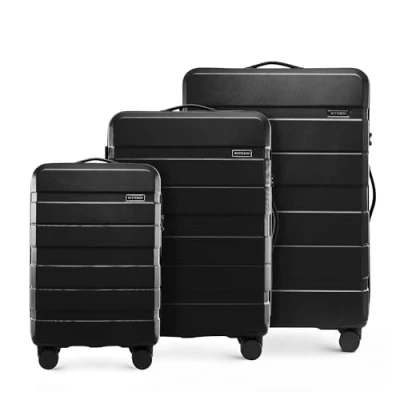 WITTCHEN COMODO Line Suitcase Set, Hard Luggage, ABS TSA Lock Size S + M L, Black, Koffer Set 3tlg., of 3.