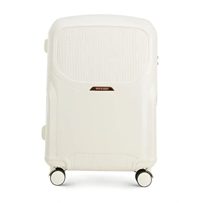 WITTCHEN Lady 2 Stylish Medium Sized Suitcase Travel Luggage Hard Wearing Polycarbonate Trolley 4 Double Wheels TSA Combination Lock 3,8 kg 65 L Size M Cream Elements in Rose Gold
