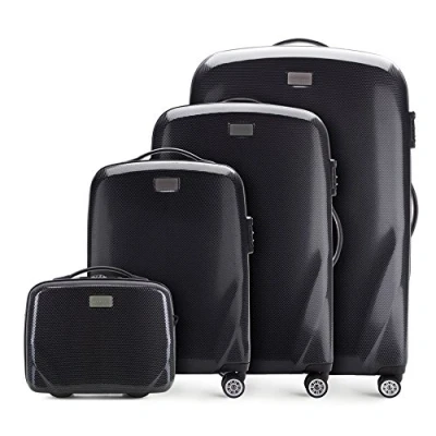 WITTCHEN PC Ultra Light Hard Luggage Travel Suitcase Set of 4 suitcases Polycarbonate Four Wheels TSA Combination Lock Aluminum Telescopic Handle Size (S+M+L+Toiletry Bag) Black