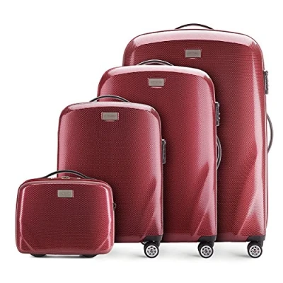 WITTCHEN PC Ultra Light Hard Luggage Travel Suitcase Set of 4 suitcases Polycarbonate Four Wheels TSA Combination Lock Aluminum Telescopic Handle Size (S+M+L+Toiletry Bag) Dark red