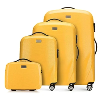 WITTCHEN PC Ultra Light Hard Luggage Travel Suitcase Set of 4 suitcases Polycarbonate Four Wheels TSA Combination Lock Aluminum Telescopic Handle Size (S+M+L+Toiletry Bag) Yellow