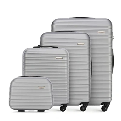 WITTCHEN Travel Suitcase Carry On Cabin Luggage Hardshell Made of ABS with 4 Spinner Wheels Combination Lock Telescopic Handle Groove Line Set suitcases Grey