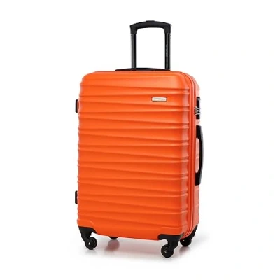 WITTCHEN Travel Suitcase Carry On Cabin Luggage Hardshell Made of ABS with 4 Spinner Wheels Combination Lock Telescopic Handle Groove Line Size Medium Orange