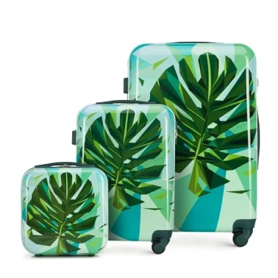 WITTCHEN Young Collection Luggage Set of 3 Suitcases ABS with Polycarbonate Coating Combination Lock Retractable Handle Size (S+M+Cosmetic case) Green Blue