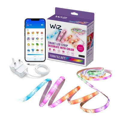 JoybuyThe Wiz Smart Lighting LED Strip RGBIC 10m is a flexible, easy-to-install silicone light strip offering millions of colors and dynamic modes. It connects directly to Wi-Fi for smart control via smartphone, requires no additional hub, and is perfect for adding vibrant accents to any space.