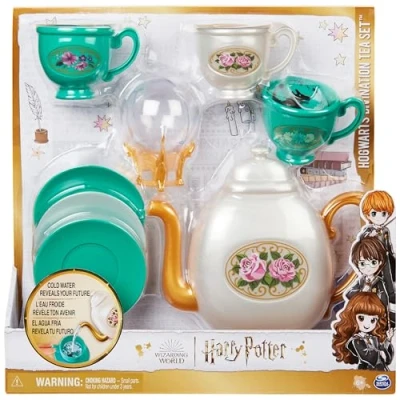 COLD WATER REVEAL: Pour cold water from the teapot into one of the teacups and have a friend read your tea leaves! Reveal symbols like the sun for great happiness, a heart for love and The Grim! GAZE INTO THE CRYSTAL BALL: Pretend to refine the art of crystal-gazing, just like Hogwarts students! What will you see Experience the magic of Harry Potter with this fun kids tea set! PERFECT FOR EASTER BASKETS: Wizarding World Harry Potter toys are perfect Easter basket stuffers and make great Easter gifts for kids aged 6 and up. Collect them all! HARRY POTTER GIFTS AND TOYS FOR 6 YEAR OLD GIRLS AND BOYS: Discover the Wizarding World with Harry Potter toys & games, dolls & accessories, wands, toy figures & playsets! These toys for kids are the perfect gifts!.Includes: 1 Teapot, 3 Teacups, 3 Saucers, 1 Crystal Ball with Stand.Covered by the Spin Master Care Commitment. See below for full details International products have separate terms, are sold from abroad and may differ from local products, including fit, age ratings, and language of product, labeling or instructions., Platforms: PlayStation 5