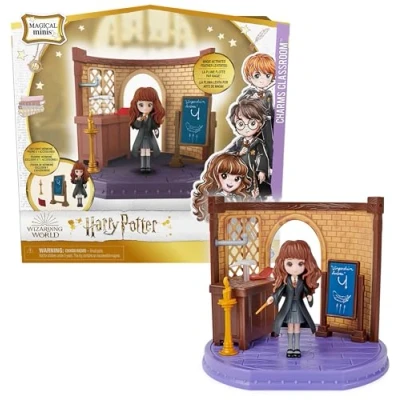 MAGICAL MINIS CHARMS CLASSROOM: Wingardium Leviosa Pretend to help Hermione cast the Levitation Charm spell in the Charms Classroom This enchanting playset is perfect for your Wizarding World adventures MAGIC-ACTIVATED LEVITATING FEATHER: Your exclusive Hermione collectible doll can practice the Levitation Spell and make the feather magically lift up by moving over the activation spot EXCLUSIVE HERMIONE DOLL AND 3 ACCESSORIES: Pose the exclusive 3-inch Hermione doll, move her arm, and use the classroom’s chalk board, spell book and candle stick accessories to add to your storytelling CONNECT TO THE MAGICAL MINIS HOGWARTS CASTLE: The Charms Classroom connects into the Hogwarts Castle (sold separately). Build your own Wizarding World with the Magical Minis toy figures and playsets Includes: 1 Playset, 1 Figure, 3 Accessories, 1 Instruction Sheet HARRY POTTER GIFTS, TOYS FOR 5 YEAR OLD GIRLS & BOYS: Magical Minis toy figures & playsets are great gifts for girls and boys aged 5 and up. Discover the Wizarding World with these fun toys for kids, Manufacturer: Spin Master