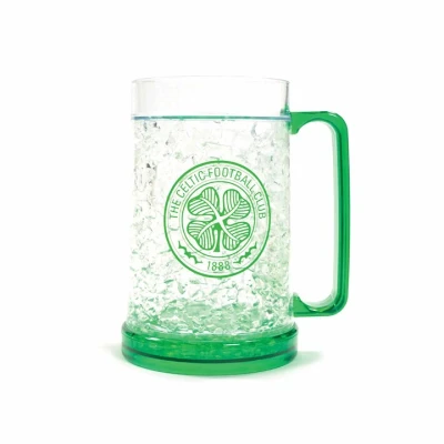 Material: plastic. Frosted design. Celtic FC crest printed in centre. Coloured handle and bottom of cup. With a swing tag.