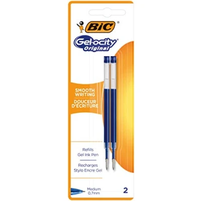 Important notes, but suddenly the pen is empty? Thanks to the BIC Gel-ocity Original Gel Roller Refills, this can be prevented - simply insert into the Gel-ocity Original Gel Roller and continue writing The refills for the Gel-ocity Original Gel Rollerball are the perfect companion in everyday life to always make organised and clear writing - even when the pen is empty The sturdy stainless steel tip ensures soft and easy writing, even with longer notes or texts - the line width of 0.3 mm allows for clear lines Used in the Gel-ocity original gel roller, the leads impress not only with a comfortable writing feeling, but also with a strong and easy-to-read blue, which is also indelible Box contents: 2 x BIC Gel-ocity original gel roller refills in blue / indelible ink / line width: 0.3 mm / suitable for Gel-ocity original gel roller / for precise and smooth writing