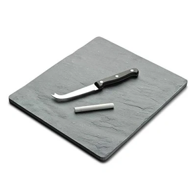 Premium quality stone cheese platter is ideal for serving about four cheeses at the Dining table. The black natural stone material creates a beautiful cheese board display Attractive traditional design for cheese lovers. Serve Cheddar, stilton, camembert, Goats and many other cheeses in style Serving board Includes chalk so that you can mark the slate with your chosen artisan cheese names, a fun twist on a traditional presentation With a good high-quality ergonomic cheese knife. Enjoy grapes, apples, figs and celery to cleanse the palate High quality slate cheese serving board which is food safe, store safely, hand wash and dry
