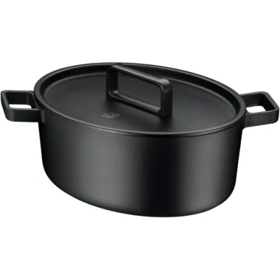 WMF Flavour Oval Casserole Dish 34 x 28 cm, Cast Iron Induction, Cookware, Enamelled, Pot, Lid, Lid with Condensation Nubs, Modern Elegance, Black
