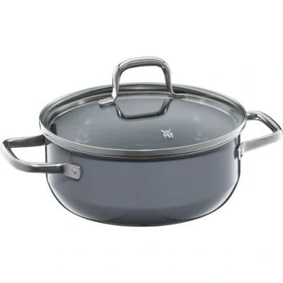 WMF Fusiontec Essential Cooking Pot Large 20 cm Glass Lid Stewing Induction 2.4 L High Tech Ceramic Scratch Resistant Uncoated Grey Made in Germany