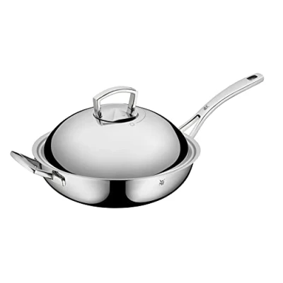 Contents: 1x wok diameter 32 cm. Article number: 0753516040. Material: 3-layer material: inside Cromargan 18/10 stainless steel, aluminium core, outside chromed steel. The WMF brand has been enjoying a strong tradition for more than 160 years. It has an international presence, sets standards and with numerous innovations in the marketplace is a key trendsetter. It accompanies every gourmet through everyday life with high-quality, functional and stylish products for the table and kitchen, while meeting the highest design requirements.